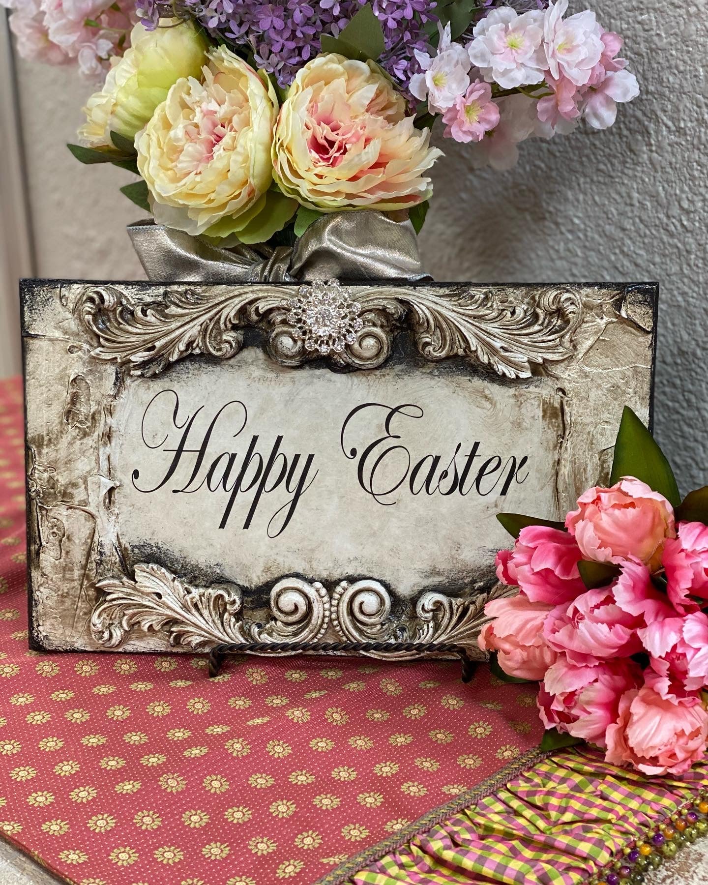 Michelle Butler Gorgeous Happy Easter Plaques Harmonize Beautifully with Reilly-Chance Decor! The Michelle Butler Powder Room Plaque would look perfect in your Old World Style Bathrooms.