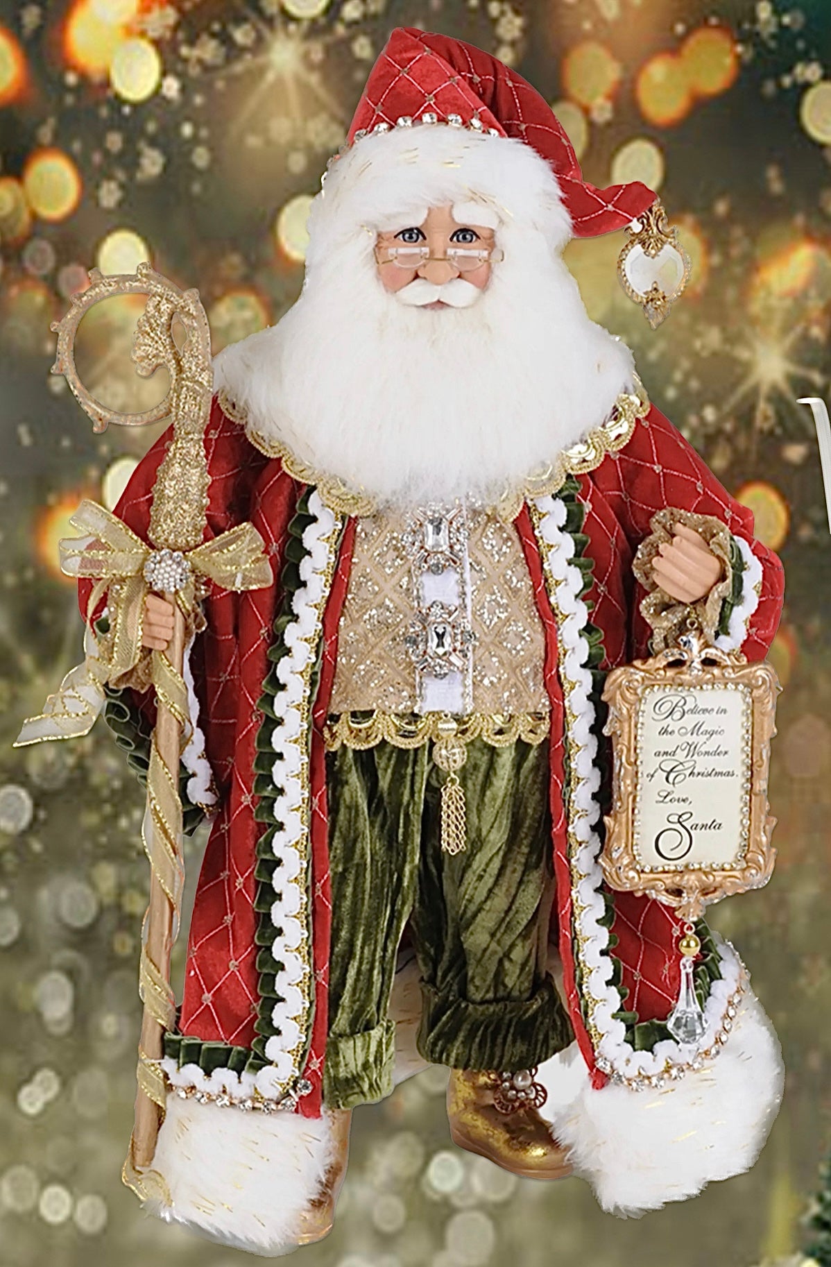 The Wonder of Christmas Santa is great for any shelf, mantle, and countertop. The quality is unmatched with this decorative piece’s hand-painted face, inset eyes, unique fabric, and detailed accessories. With this design's luxurious touch and charming sign, he's sure to add character and style to any home. Gorgeous from every angle!